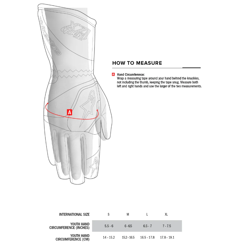 Alpinestars har designat denna karthandske för barn för att ge hög hållbarhet och prestanda med exceptionell passform och känsla. Handsken har 50/50 mesh och lycra för att ge optimal ventilation, flexibilitet och komfort. Pekskärmskompatibelt material används på fingertopparna, så att telefoner och surfplattor kan användas utan att behöva ta av handskarna.