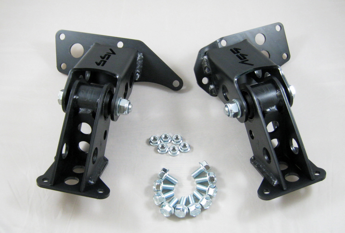 4 st. fästen inklusive bussningar samt alla bultar, muttrar och brickor som behövs för montering i balk och motorblock.